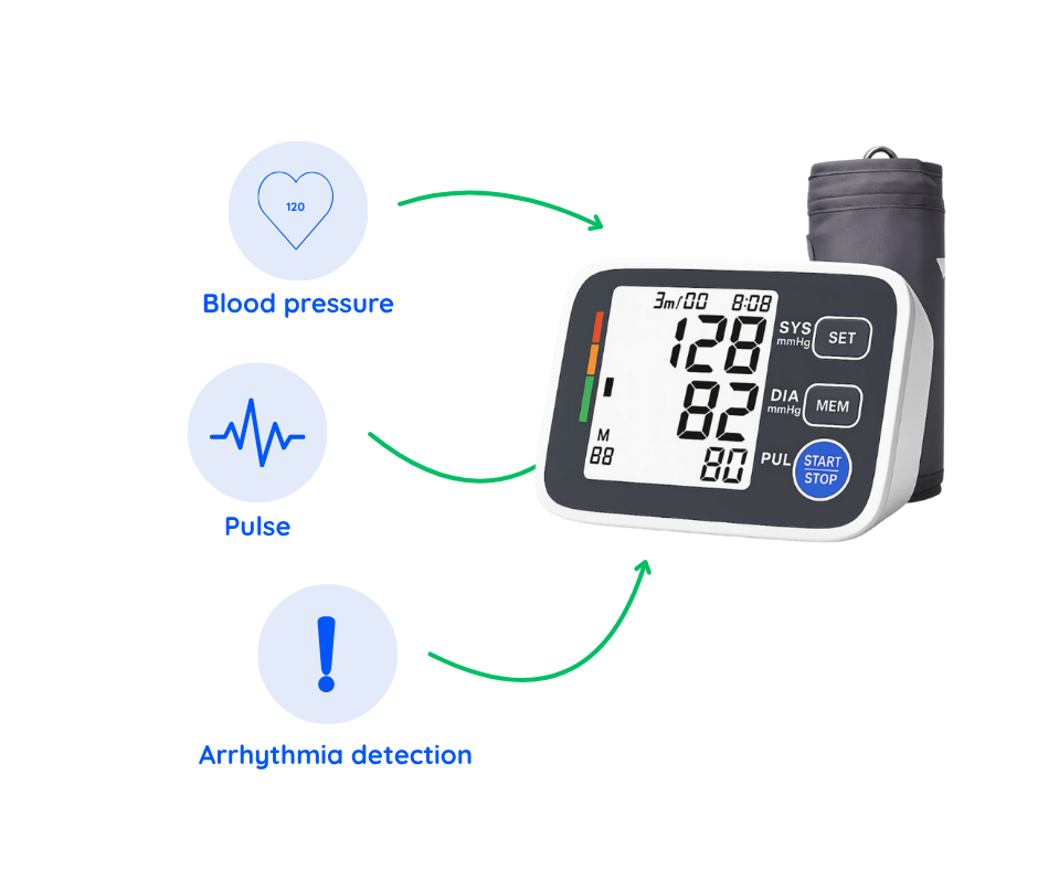 No more notebooks or unnecessary visits. Omply lets you handle your health follow-ups easily and safely from home. Blood pressure monitoring kit package includes a stethoscope and a blood pressure monitor.