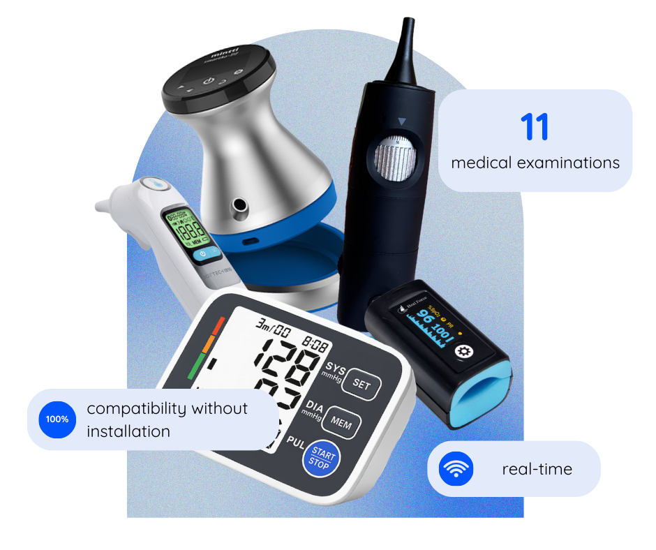 The diagnostic devices connect directly to the patient’s smartphone, so the examination can begin right away – with no complicated setup.