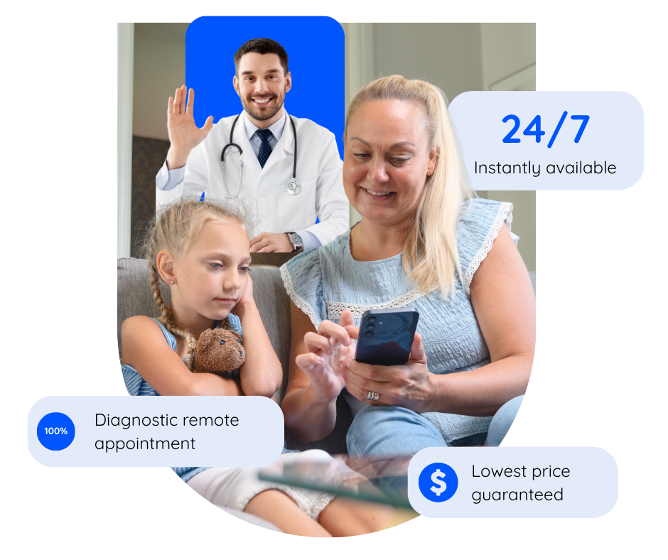 During the appointment, the doctor guides you step by step. Heart sounds, lungs, throat, ears and key vitals can all be examined remotely. You’ll receive a diagnosis, instructions and a prescription right away.
